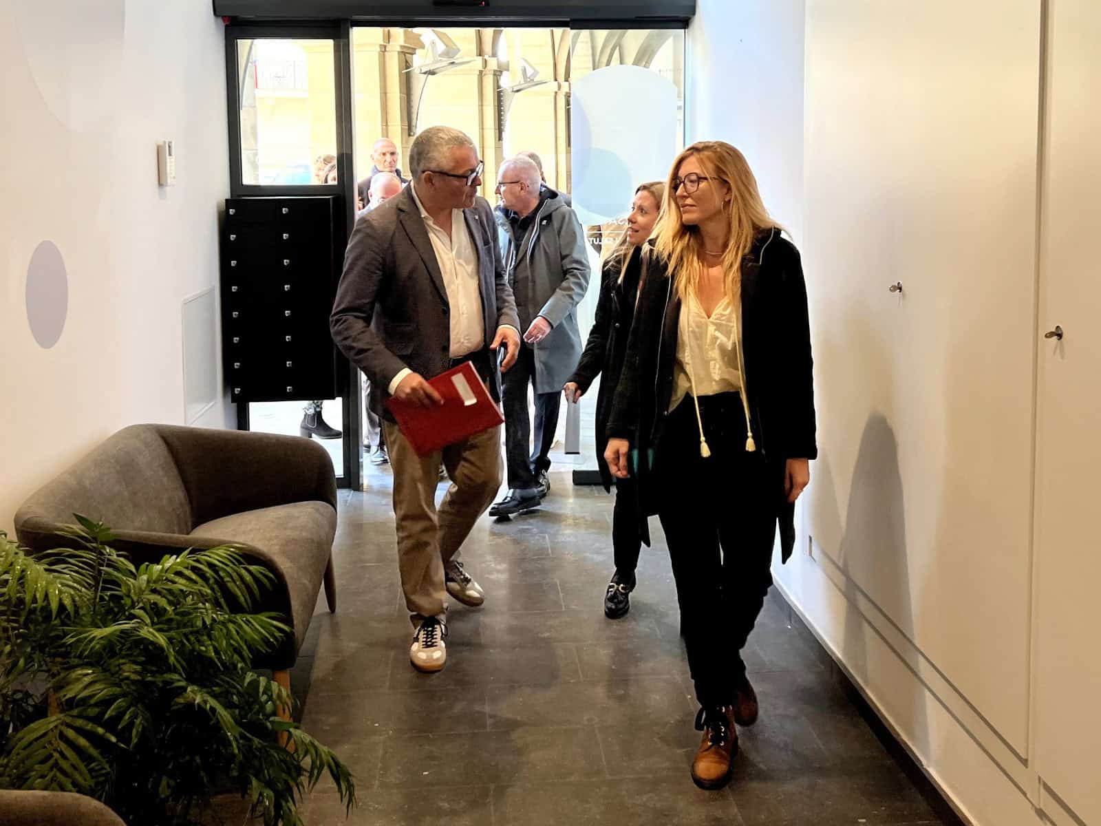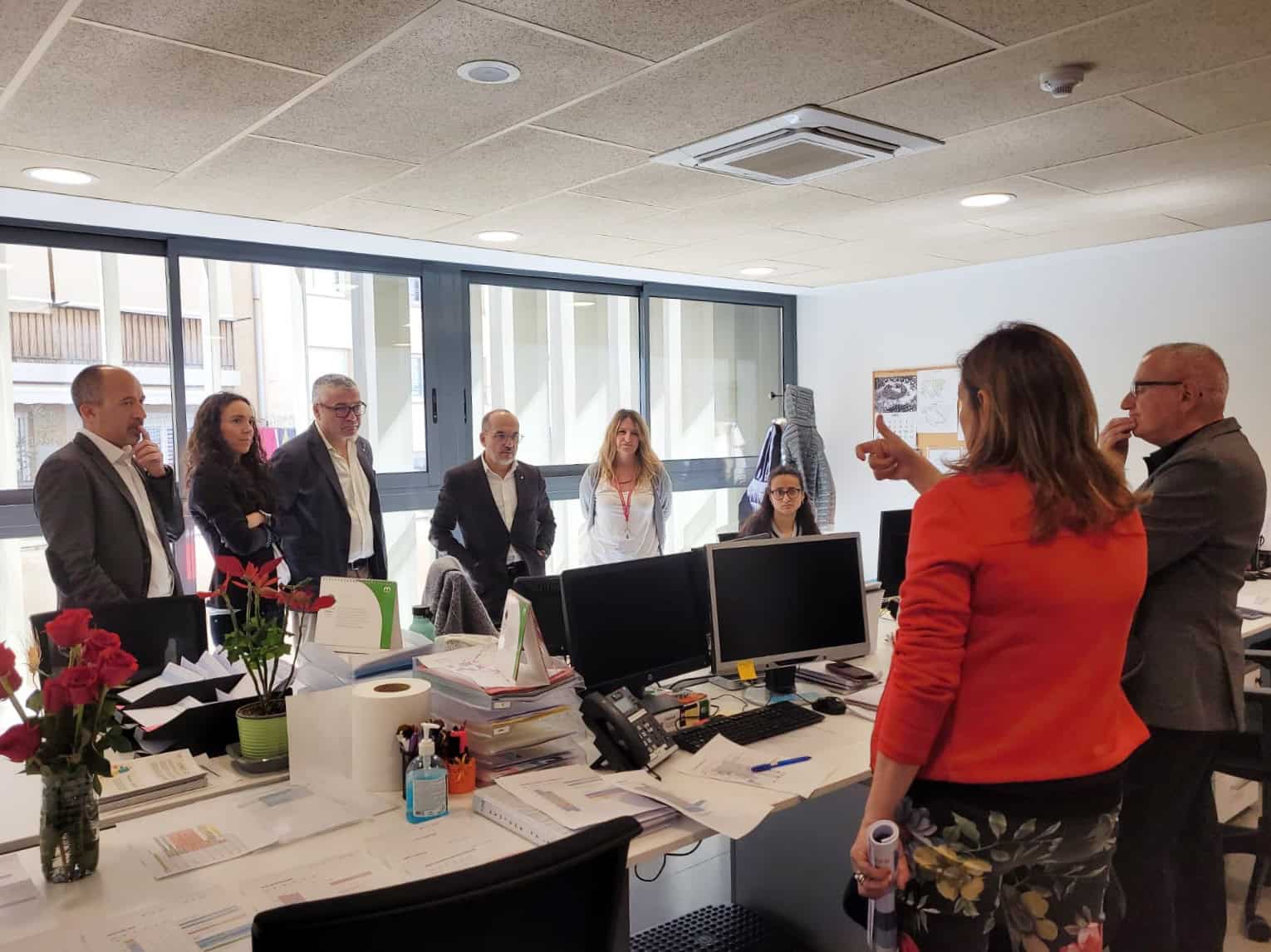 Tras visitar las Viviendas con Servicios, los consellers también acudieron a las oficinas del Servicio de Ayuda a Domicilio (SAD), donde les recibió la directora de este servicio, Cristina Plaza. Allí han podido intercambiar opiniones con las trabajadoras del SAD.